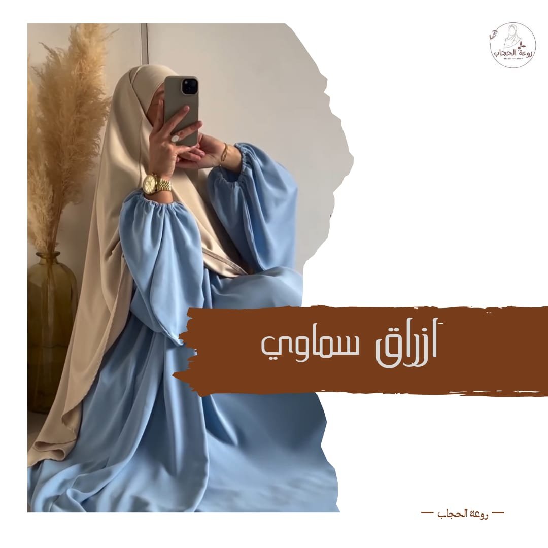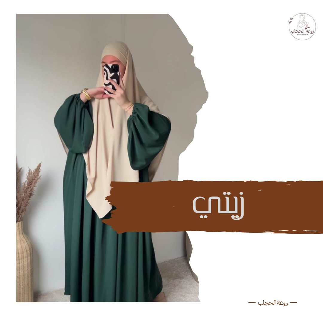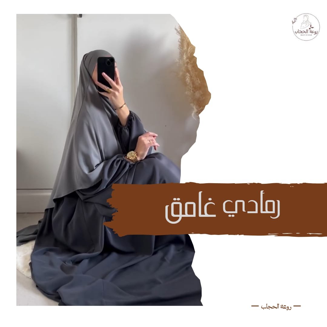 يتكوّن الطقم من عباءة واسعة بقَصّة انسيابية مع خمار متناسق يمنحك إطلالة متكاملة وناعمة.