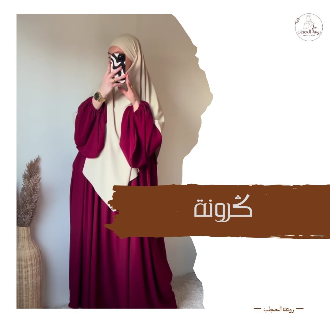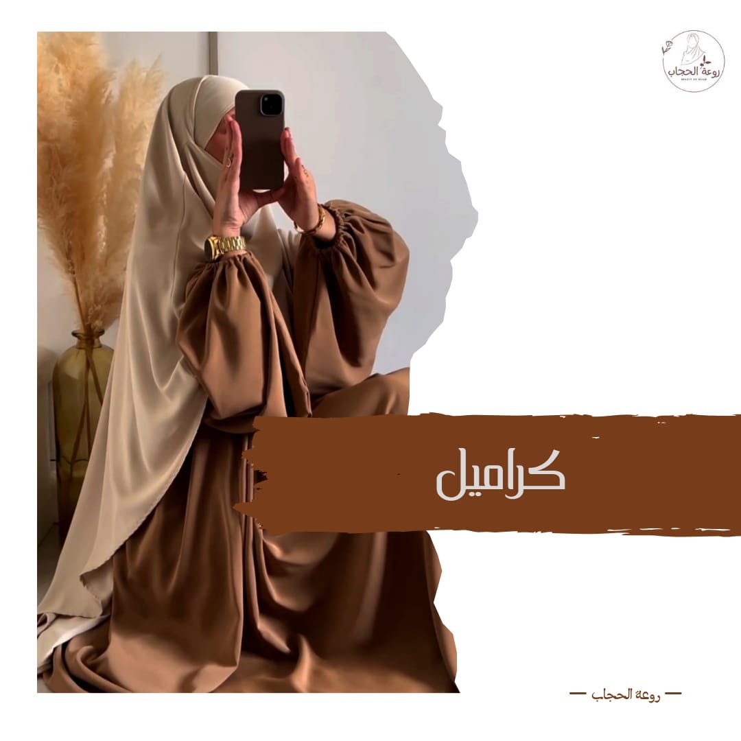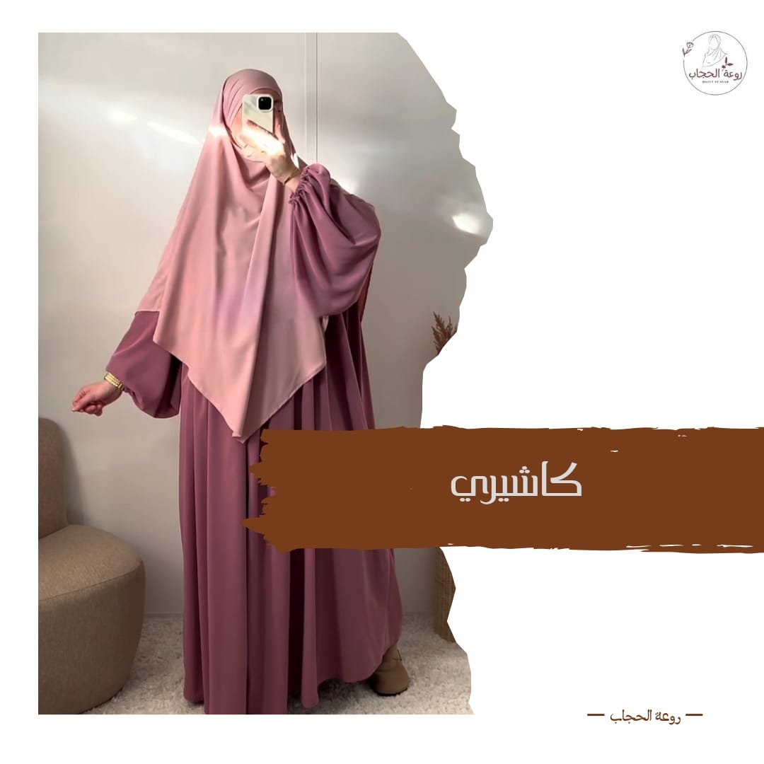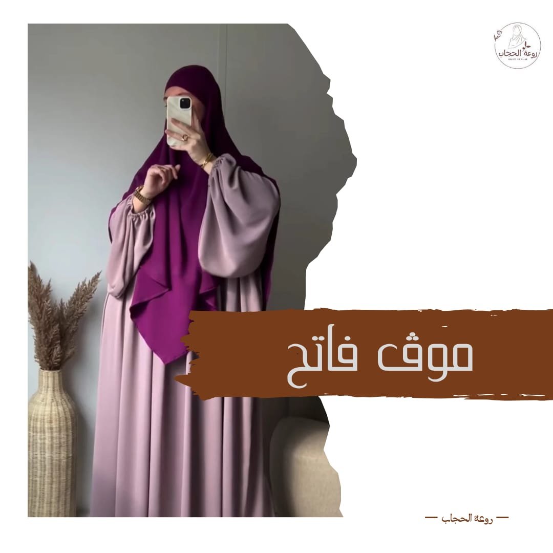 يتكوّن الطقم من عباءة واسعة بقَصّة انسيابية مع خمار متناسق يمنحك إطلالة متكاملة وناعمة.